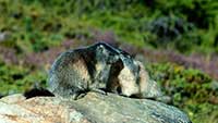 Tag 8 Tag 1, Tag 2, Tag 3, Tag 4, Tag 5, Tag 6, Tag 7, Tag 8, Tag 9 Der letzte Tag in Zermatt sollte ein ruhiger Tag ohne große Wanderungen werden. "Murmeltiere beobachten" war angesagt. Ein Naturfreund warb für eine Murmeltierkolonie unterhalb der Bergstation der unterirdischen Standseilbahn zur Sunnegga. Also nichts wie hin und Beine dort lang ausgestreckt. Das taten dann auch die lieben Tierchen. Zum Mittagessen dann hinauf zur Hotelterrasse mit dem herrlichen Blick zum Matterhorn. Gäste hatte ich dort zuhauf, die meine Fritten sehr begehrten. Nein, nicht die Bernhardiner, die Bergdohlen sahnten ab. Am Nachmittag ein kleiner Rundgang über den Friedhof, der mich wirklich nachdenklich machte. Über 500 Tote verunglückten bisher am Matterhorn! Der Ehrgeiz die Gefahr suchender und dieser selbstbewußt trotzender Bergsteiger scheint ungebrochen zu sein! Tag 1, Tag 2, Tag 3, Tag 4, Tag 5, Tag 6, Tag 7, Tag 8, Tag 9 Vollbild mit Klick auf das erste Bild! |