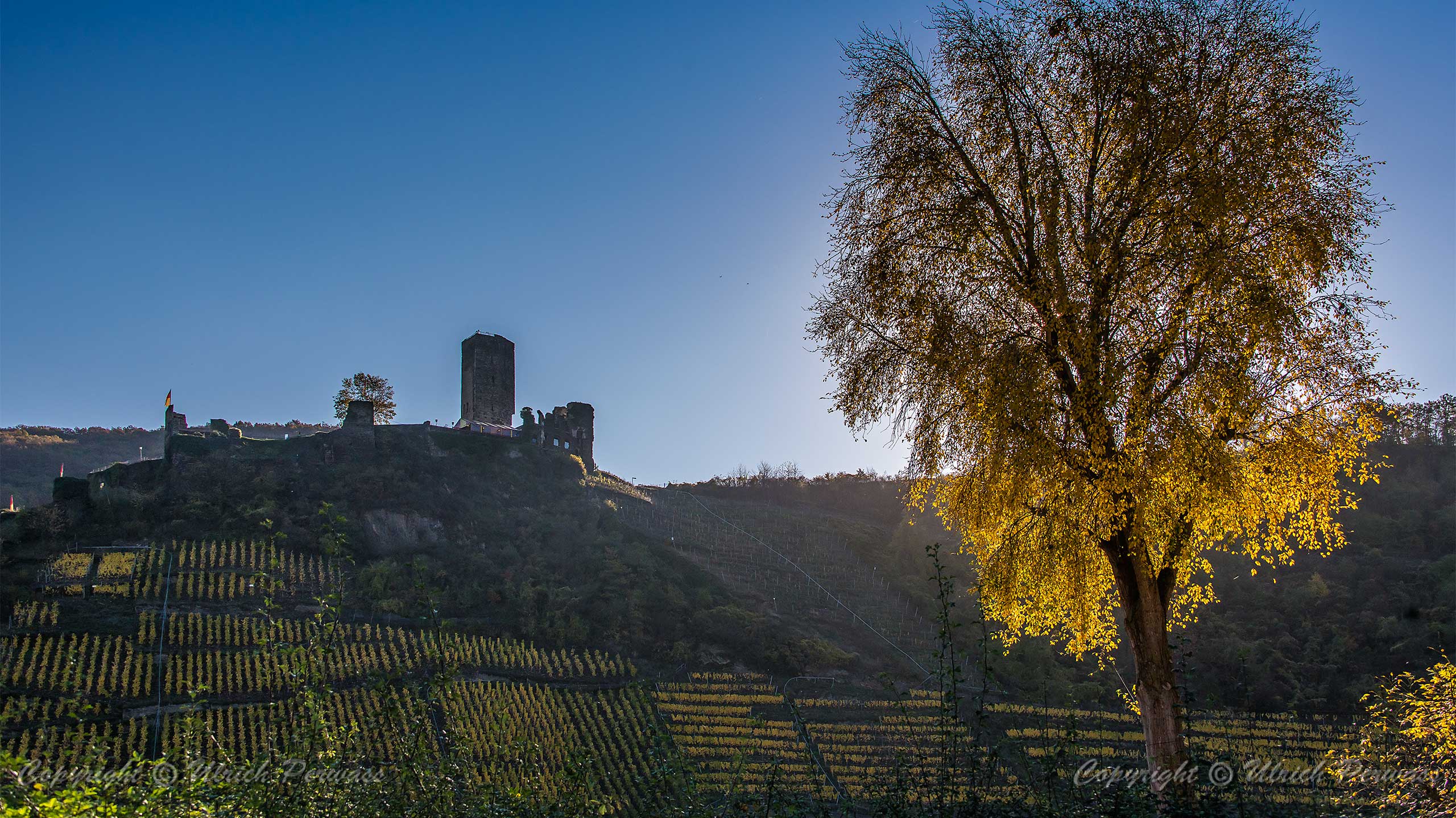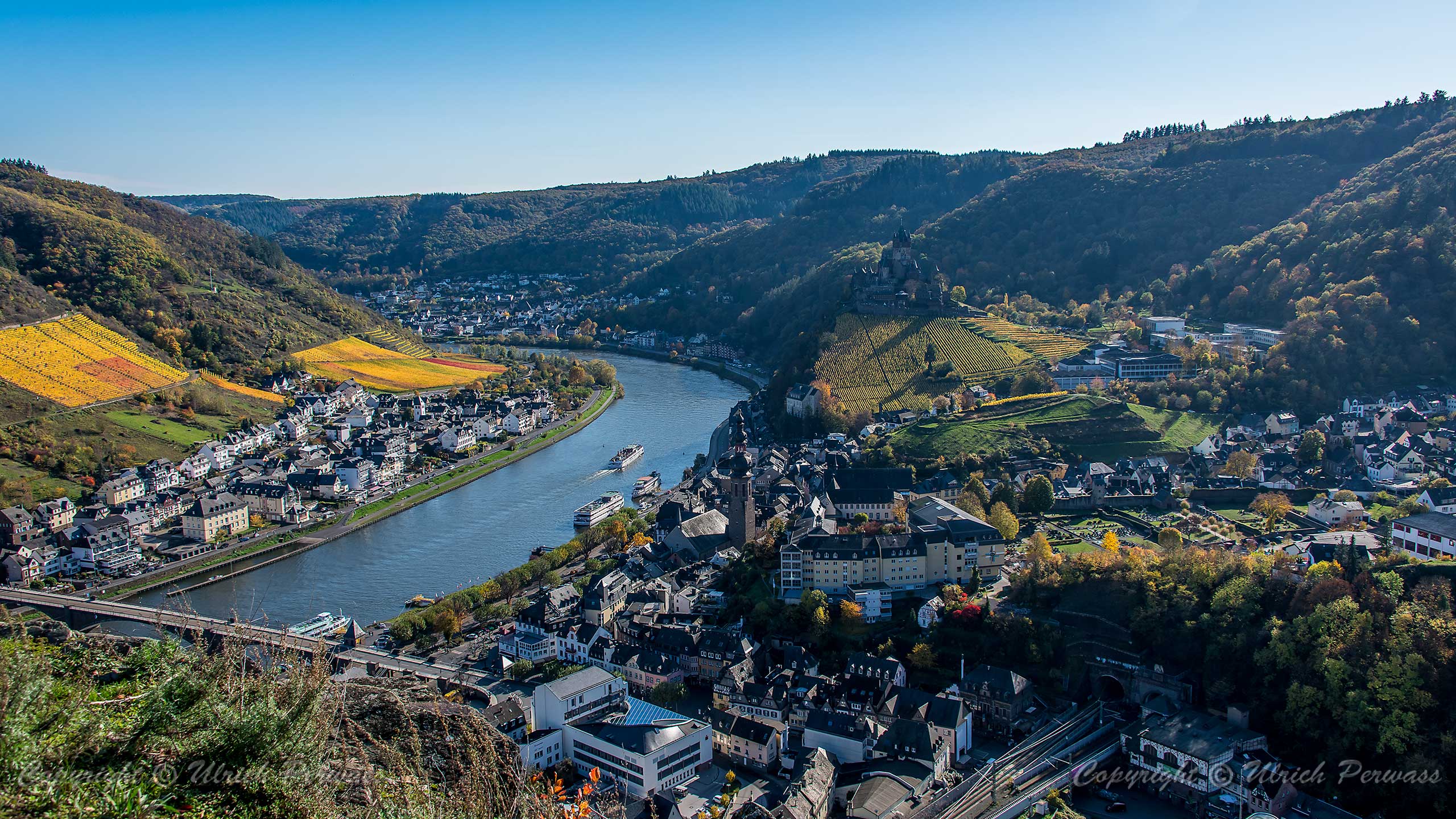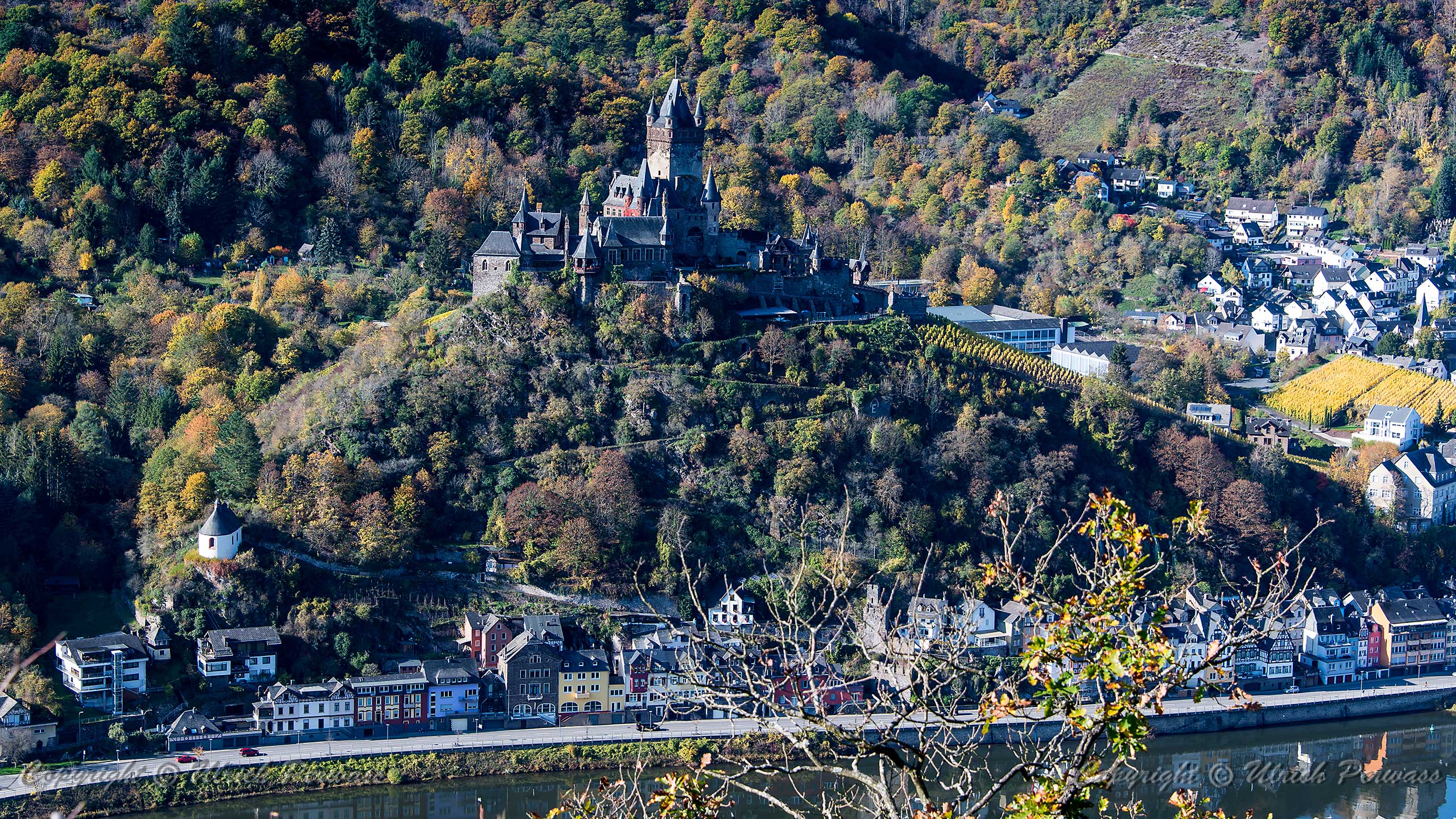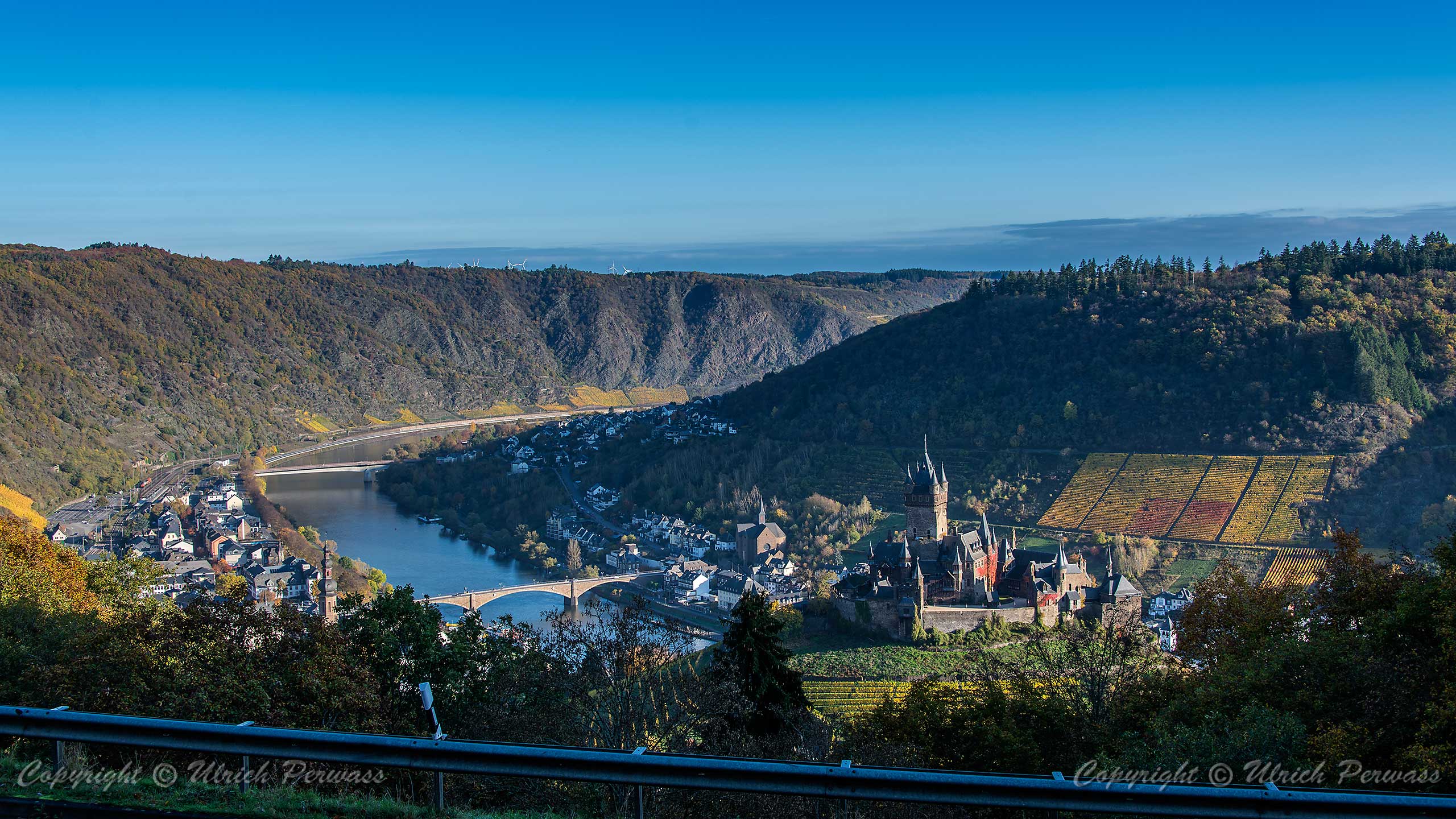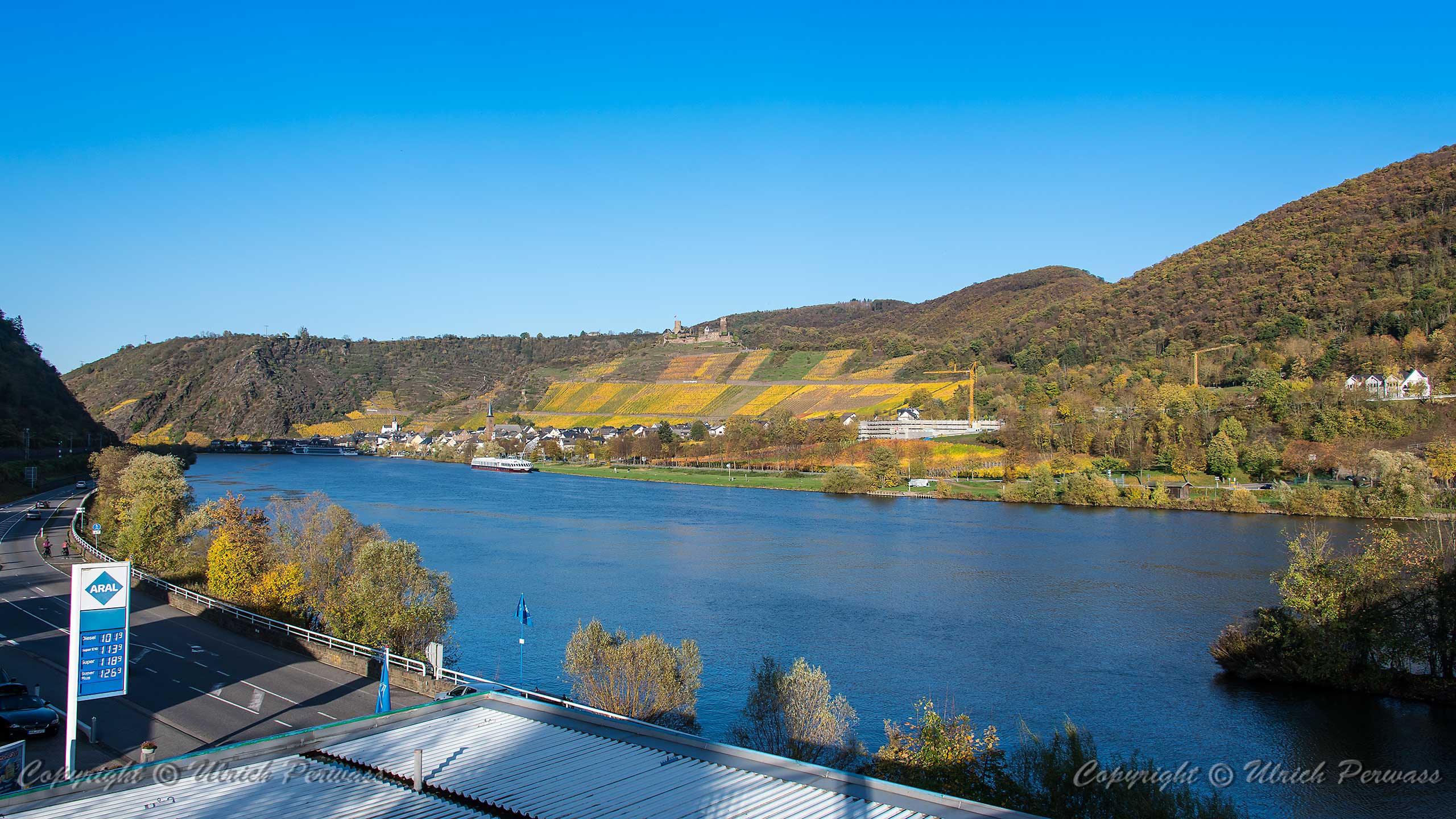 Herbst an der Mosel Für Samstag, den 31.10.2020, war nach langen Regentagen endlich Sonnenschein angesagt, so dass ich mich schon Tage vorher auf eine herbstliche Moseltour vorbereitete. Ziel waren besonders einige Aussichtspunkte oberhalb von Cochem, die man vom Wanderparkplatz Conder-Berg auch mit dem Fahrrad gut erreichen kann. Ich wählte zunächst die Anfahrt von der A48 über die B259, um von deren Parkplatz die ersten Bilder der Reichsburg Cochem schießen zu können. Danach war ein kleiner Abstecher zum romantischen Beilstein vorgesehen. Ein Abstecher mit dem Sessellift in Cochem sollte auch die Winneburg auf den Sensor bannen. Den Abschluß bildete schließlich die Burg Thurant bei Alken. Kommen Sie mit! Viel Vergnügen! |