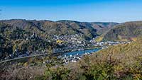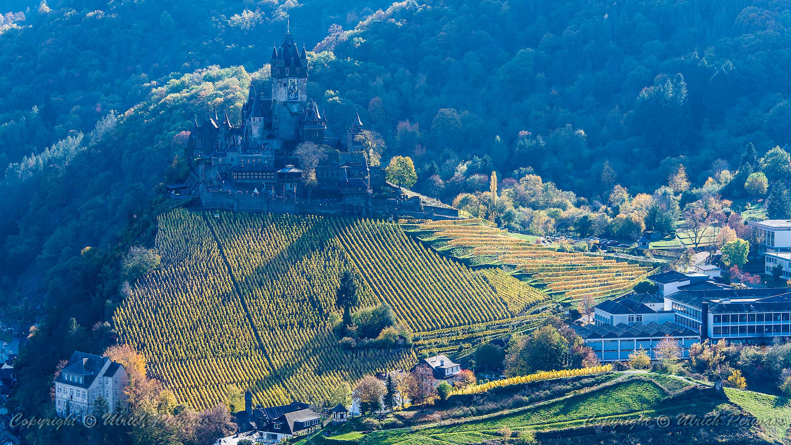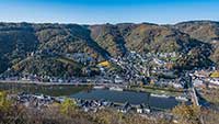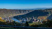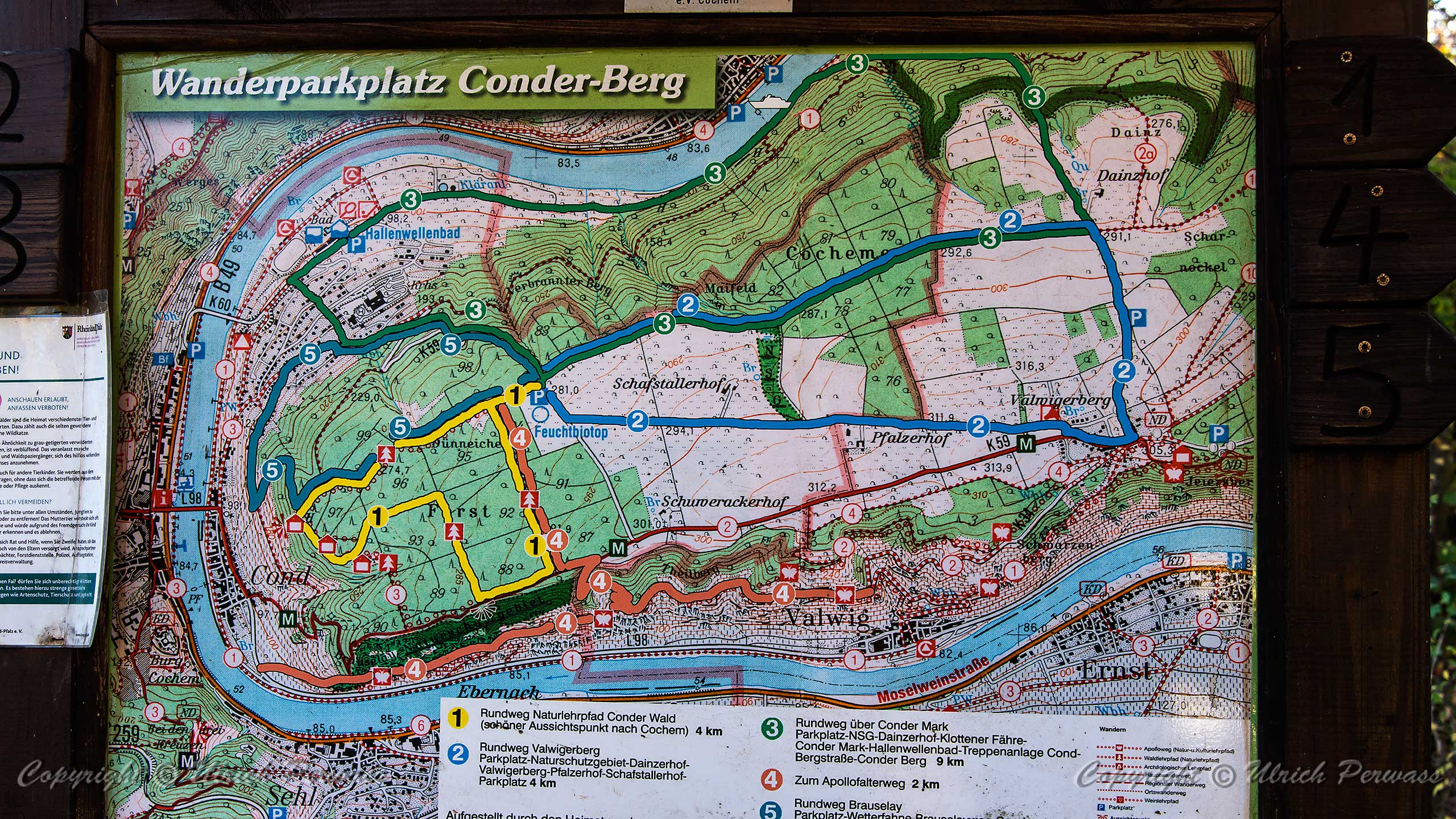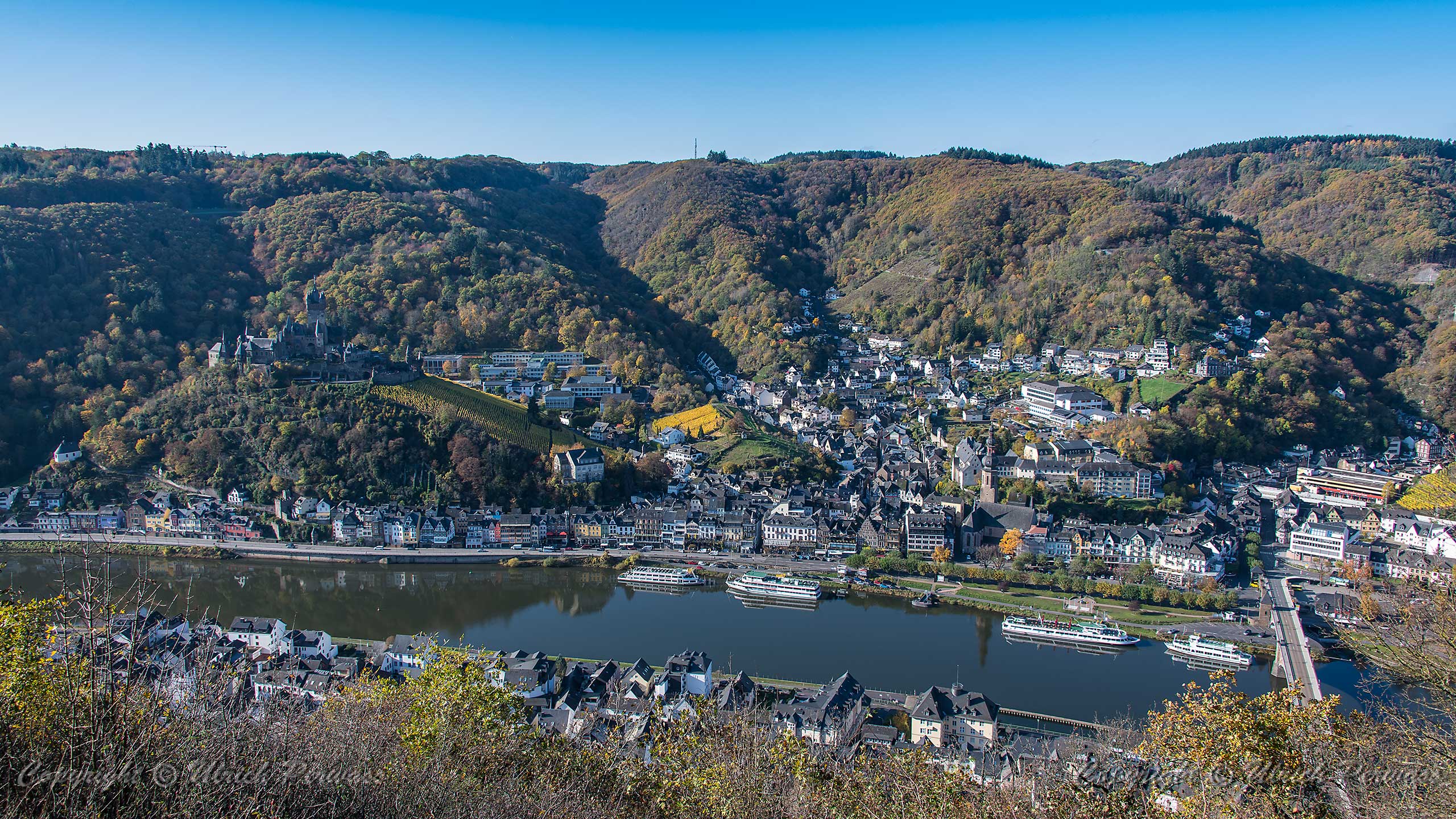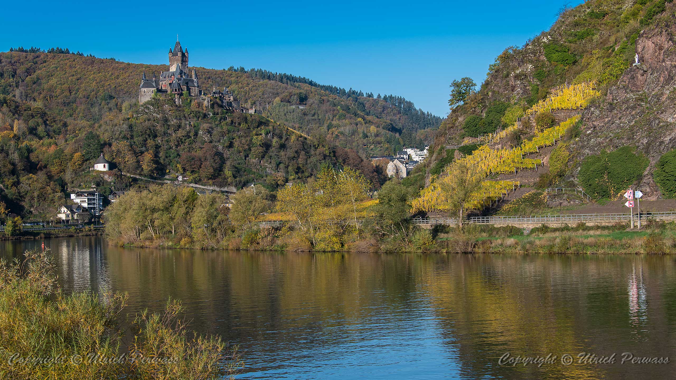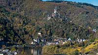 Herbst an der Mosel Für Samstag, den 31.10.2020, war nach langen Regentagen endlich Sonnenschein angesagt, so dass ich mich schon Tage vorher auf eine herbstliche Moseltour vorbereitete. Ziel waren besonders einige Aussichtspunkte oberhalb von Cochem, die man vom Wanderparkplatz Conder-Berg auch mit dem Fahrrad gut erreichen kann. Ich wählte zunächst die Anfahrt von der A48 über die B259, um von deren Parkplatz die ersten Bilder der Reichsburg Cochem schießen zu können. Danach war ein kleiner Abstecher zum romantischen Beilstein vorgesehen. Ein Abstecher mit dem Sessellift in Cochem sollte auch die Winneburg auf den Sensor bannen. Den Abschluß bildete schließlich die Burg Thurant bei Alken. Kommen Sie mit! Viel Vergnügen! |