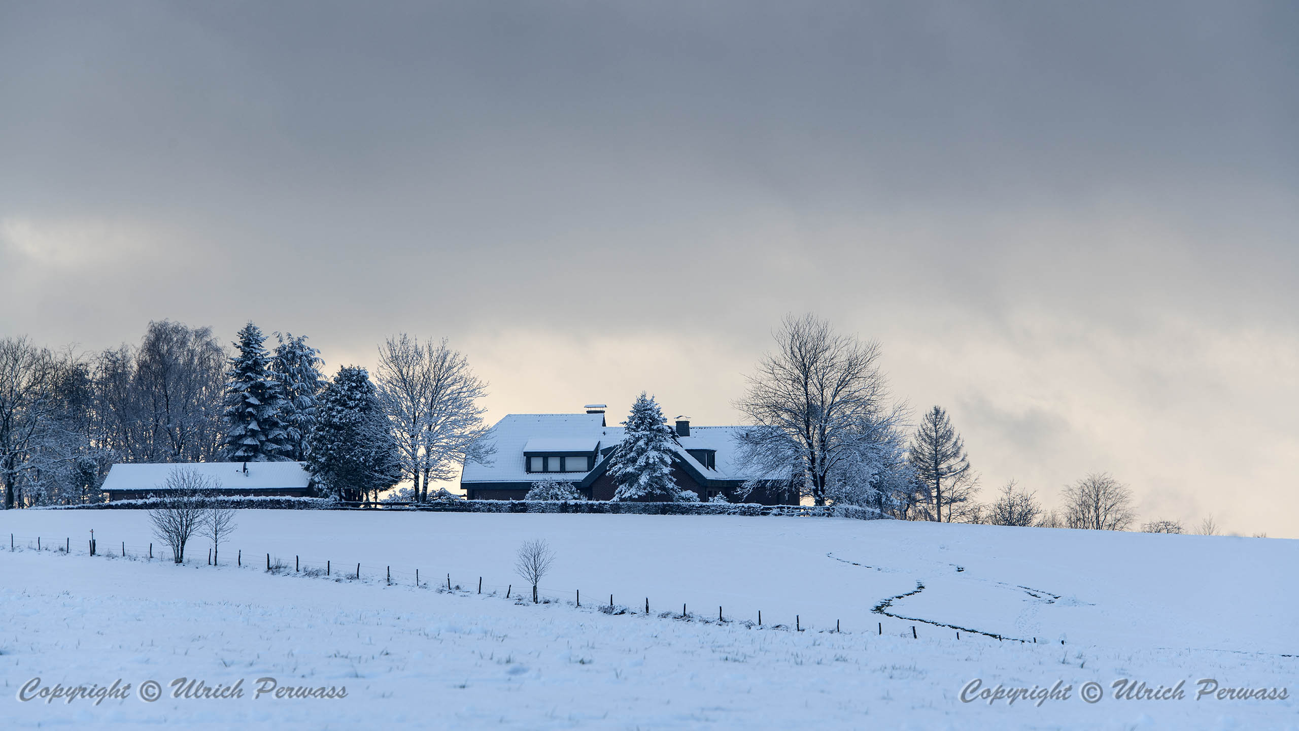 Start ins neue Jahr 2021 Erster Schnee am Blockhaus in Eckenhagen