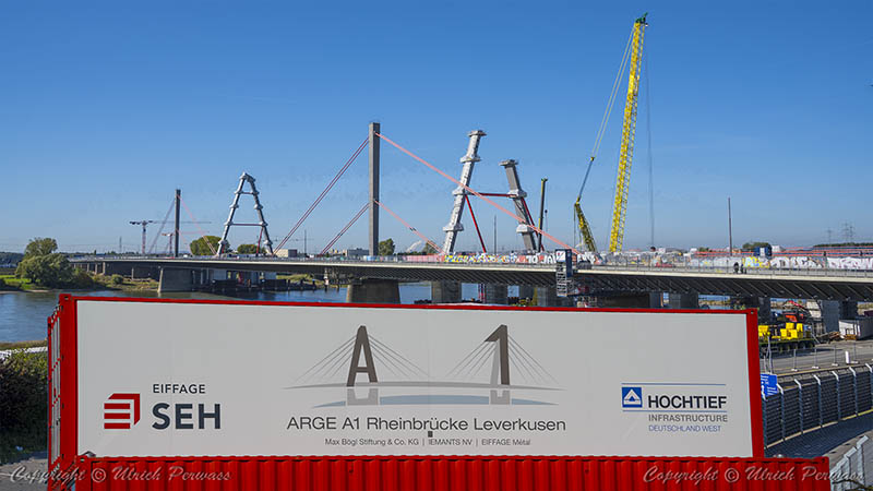 Baustelle der neuen Autobahnbrücke der A1 in Leverkusen einsammeln