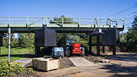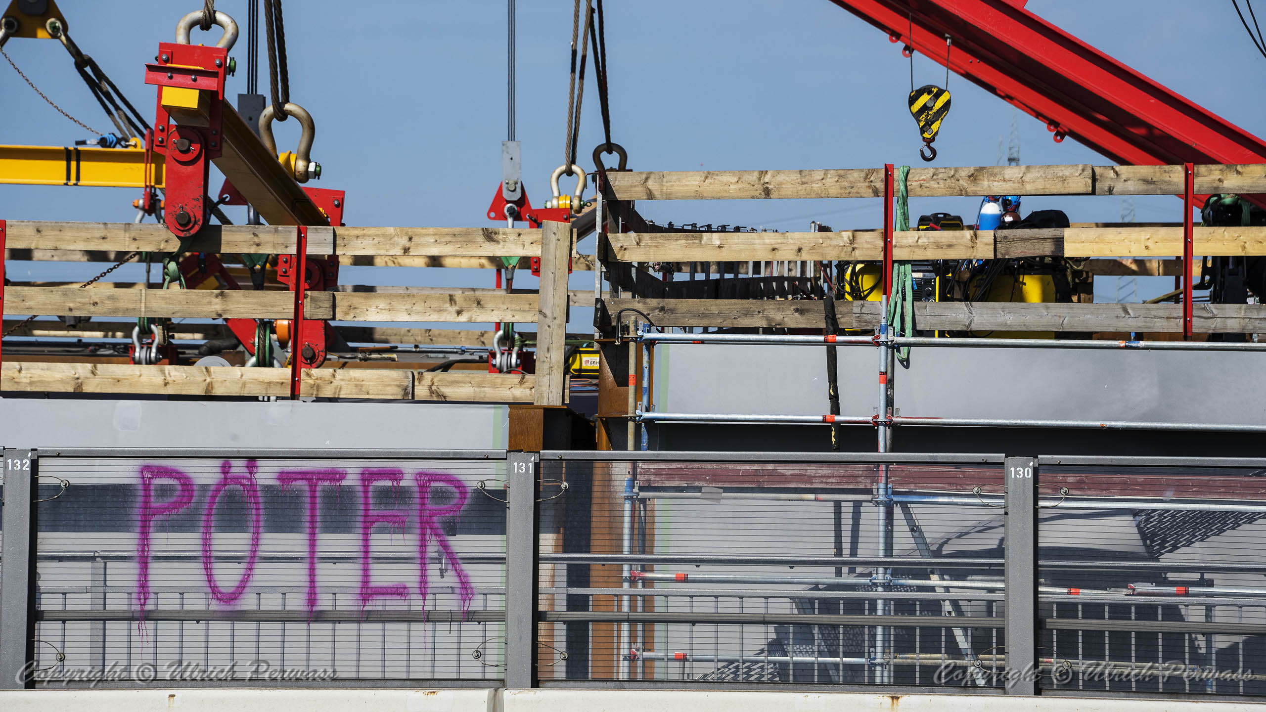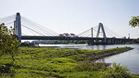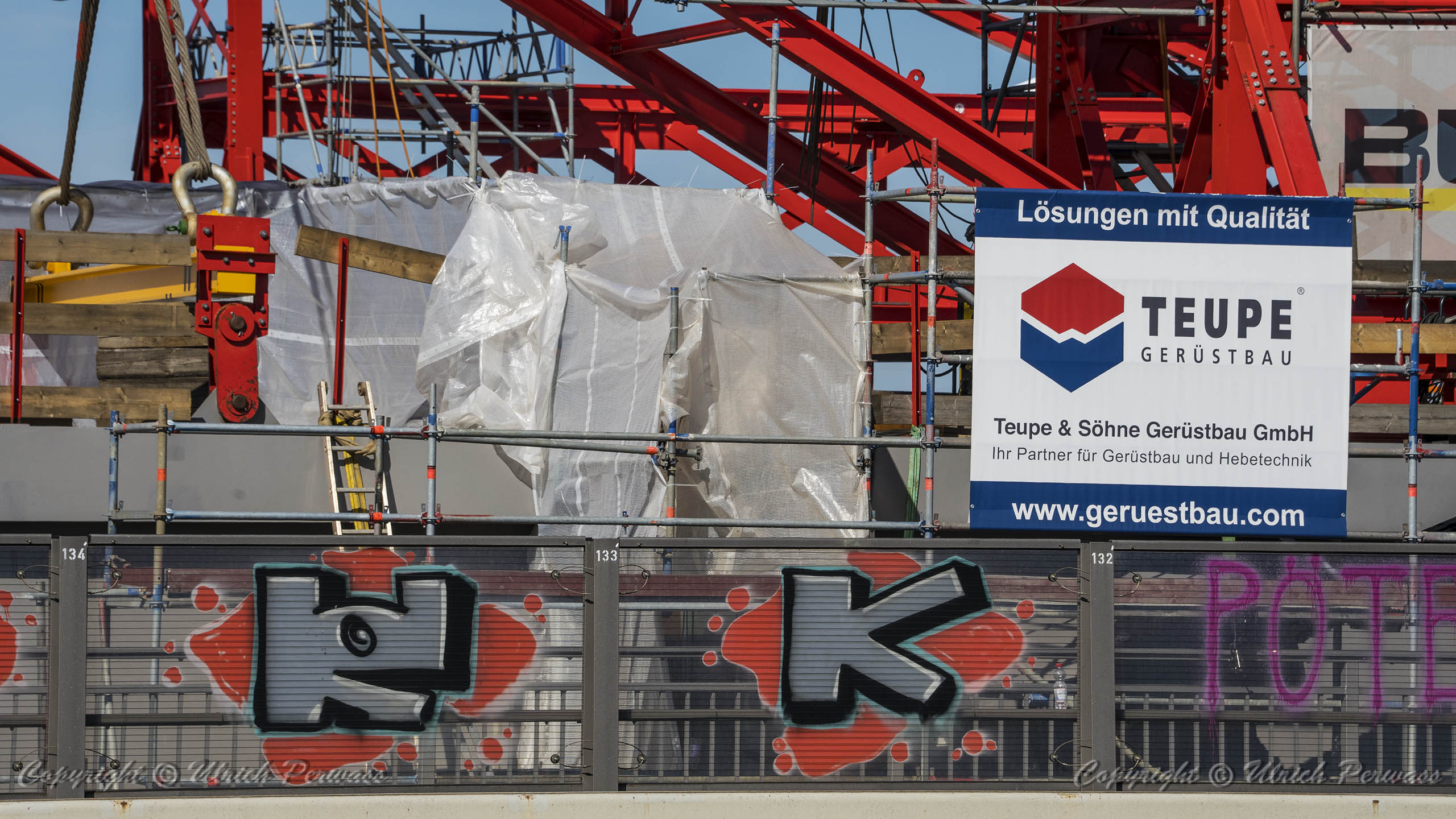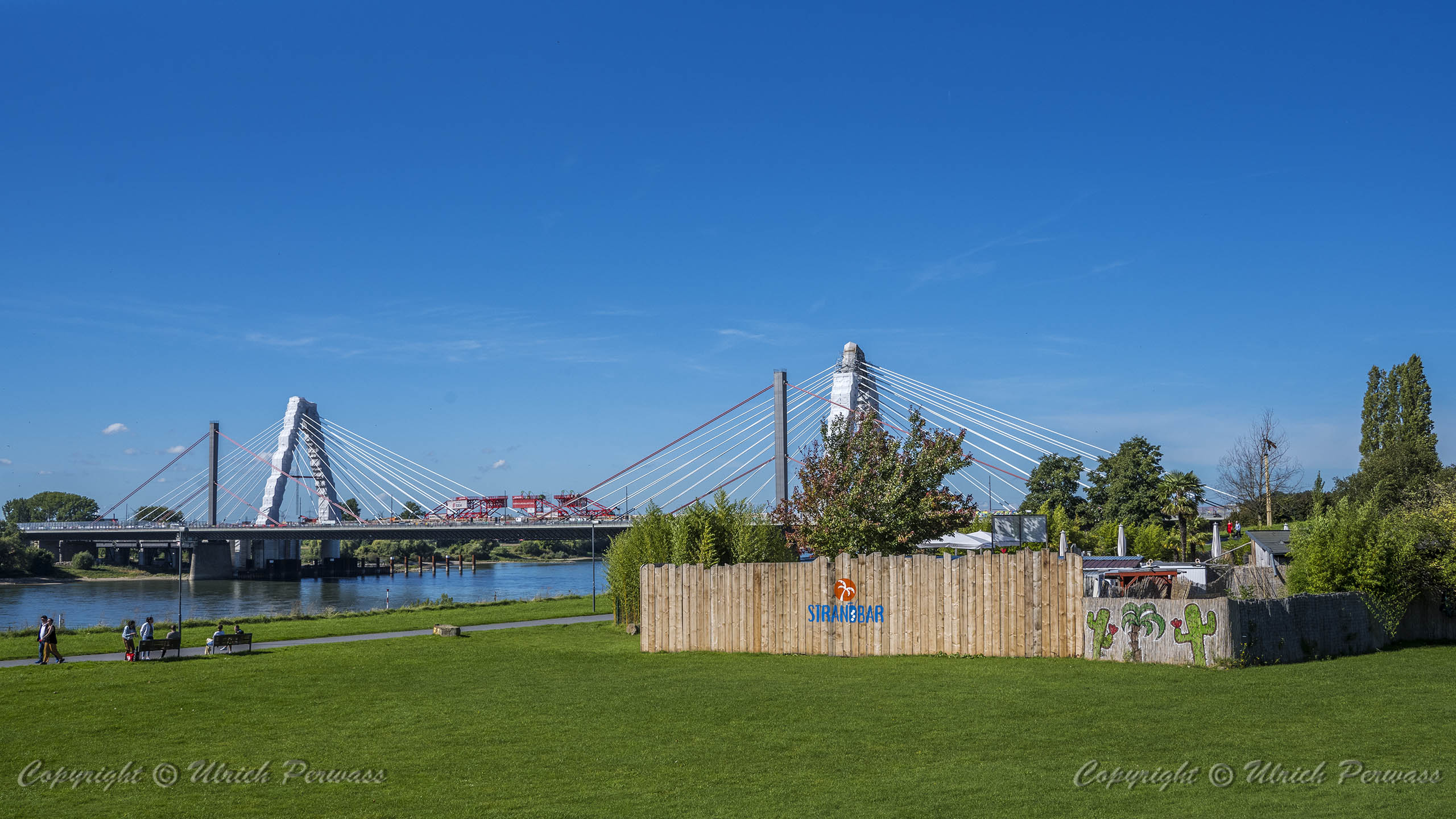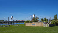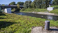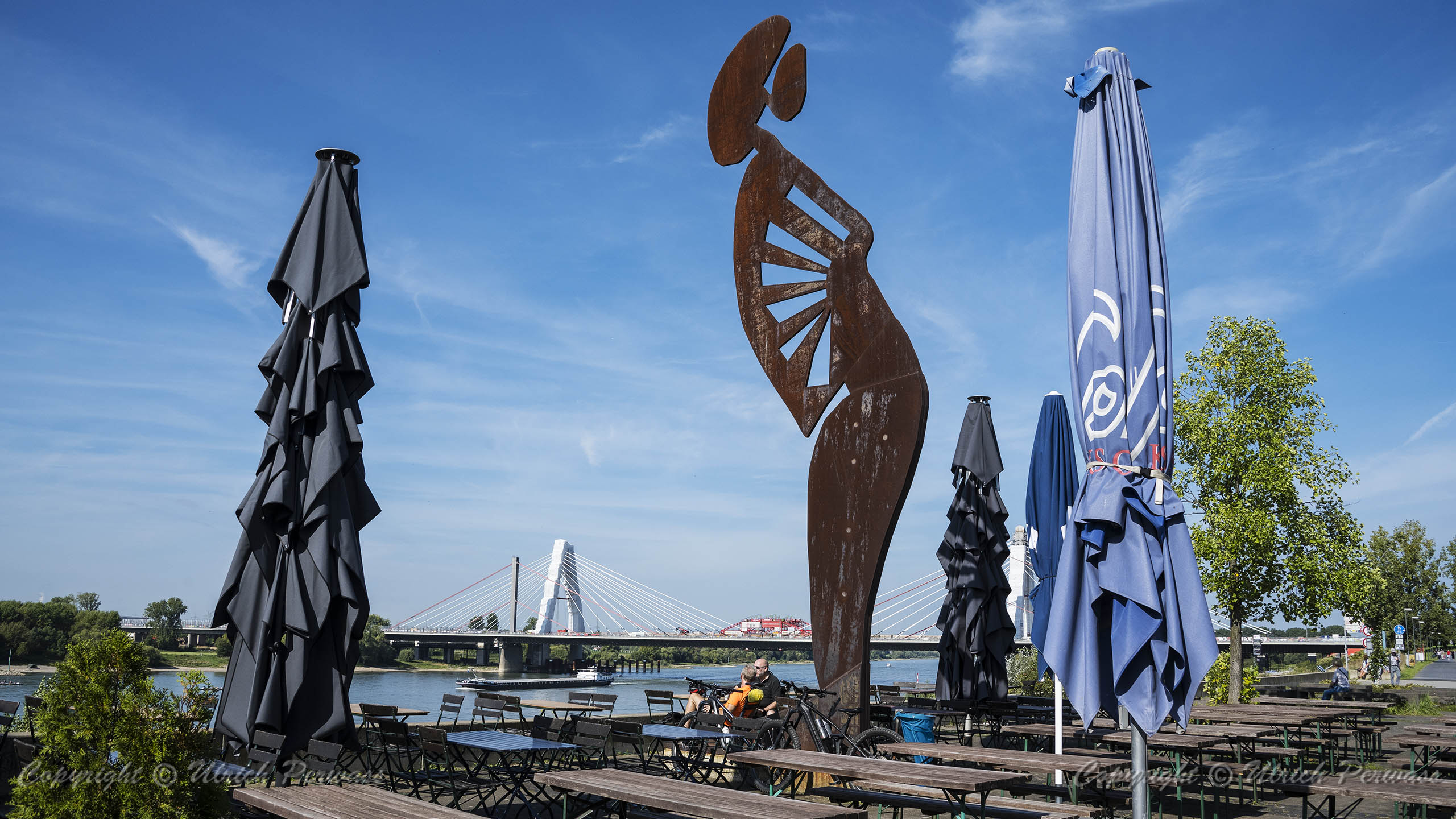 Am Dienstag, den 05.September 2023, wurden bis 17:34 Uhr die beiden letzten Stahlbauteile in die noch bestehende 17 Meter breite Lücke eingesetzt. Diese Meldung erreichte mich am Mittwoch und reizte mich natürlich zu einer neuen Fotosafari mit dem Fahrrad in Leverkusen. Am Samstag, den 9. September 2023, ging es bereits um 10 Uhr los. Vom Parkplatz an der Rheinallee 1 in Leverkusen fuhr ich wegen einer gesperrten Wupperbrücke über einen Feldweg an der linken Seite der Dhünn zur alten Wuppermündung und weiter zur Nordseite der A1-Brücke, wo ich die Baustelle möglichst gut fotografieren konnte.