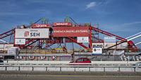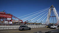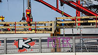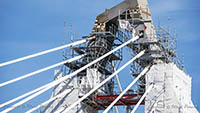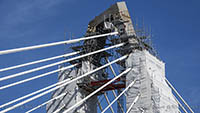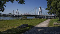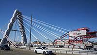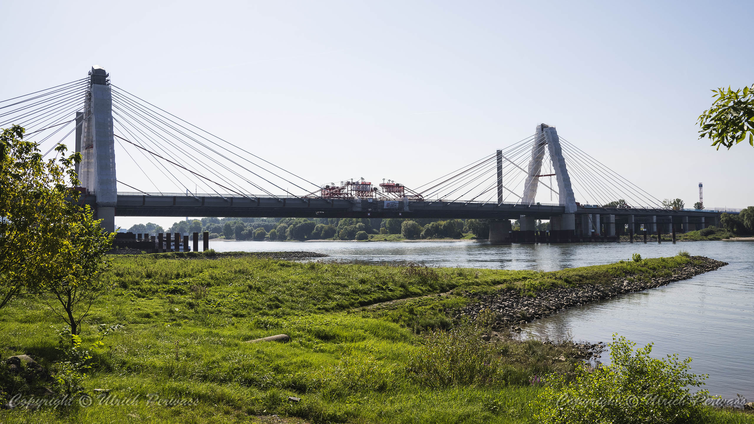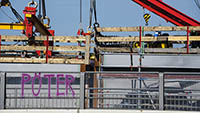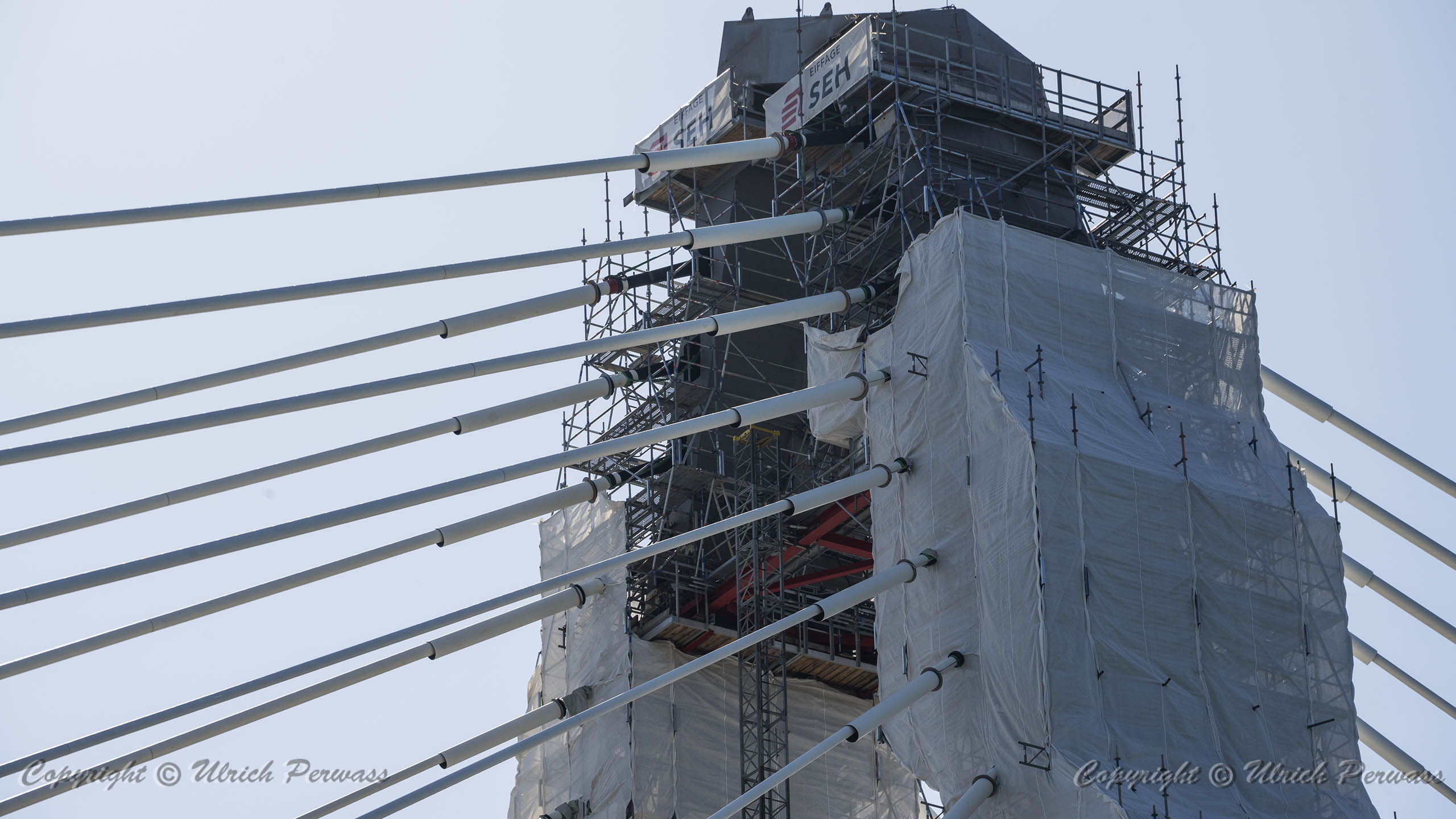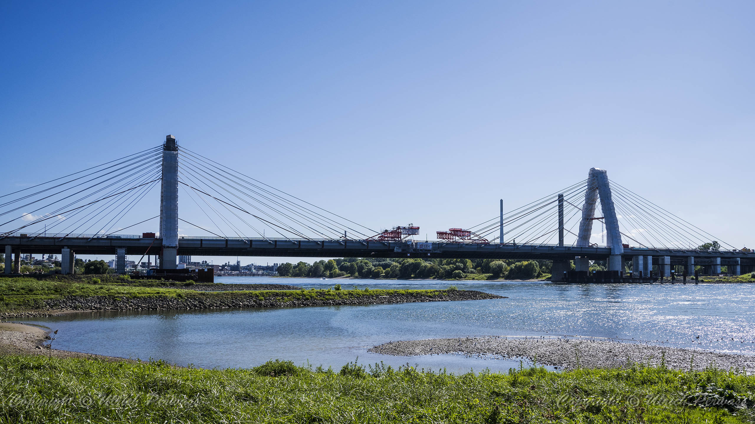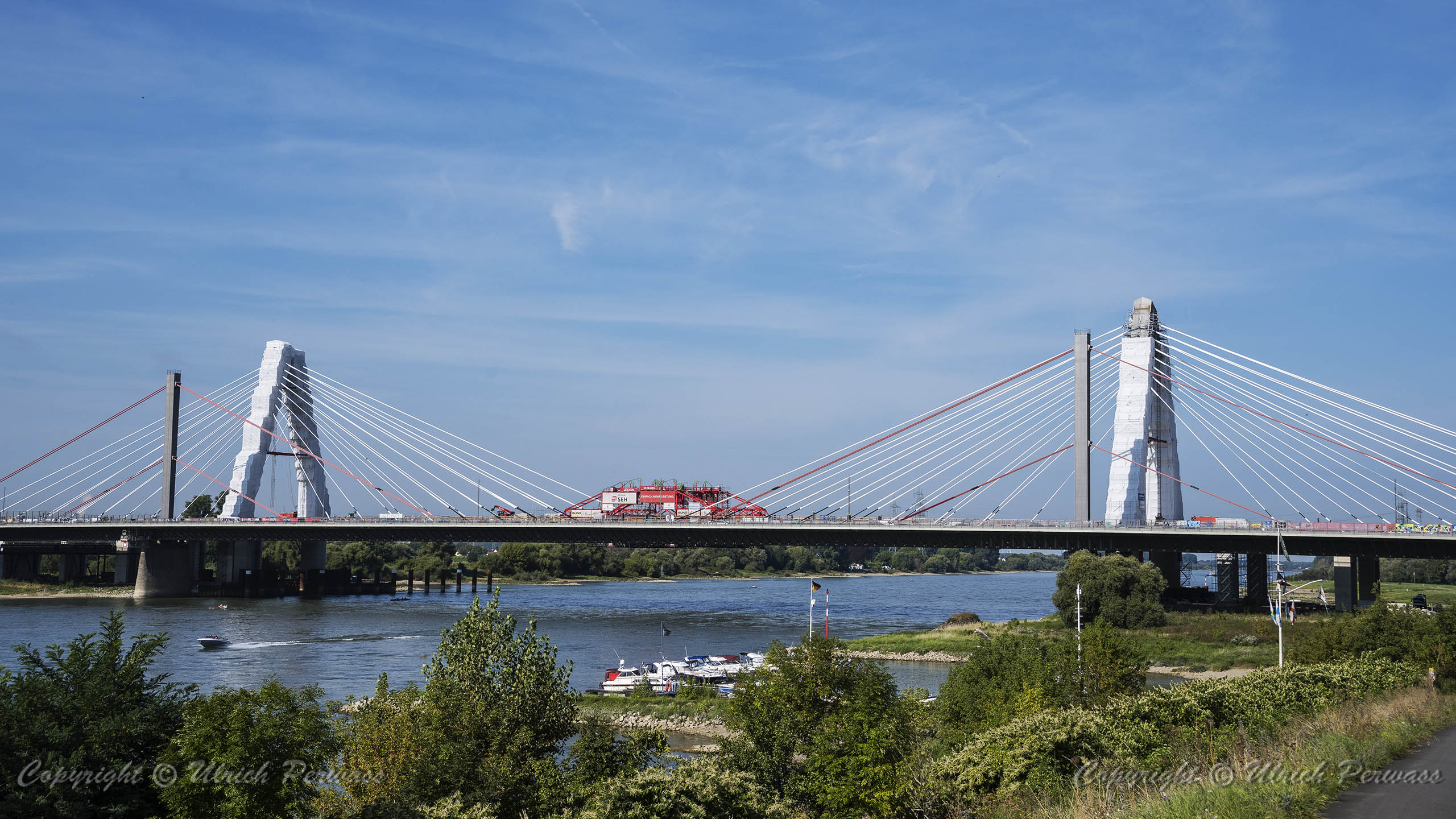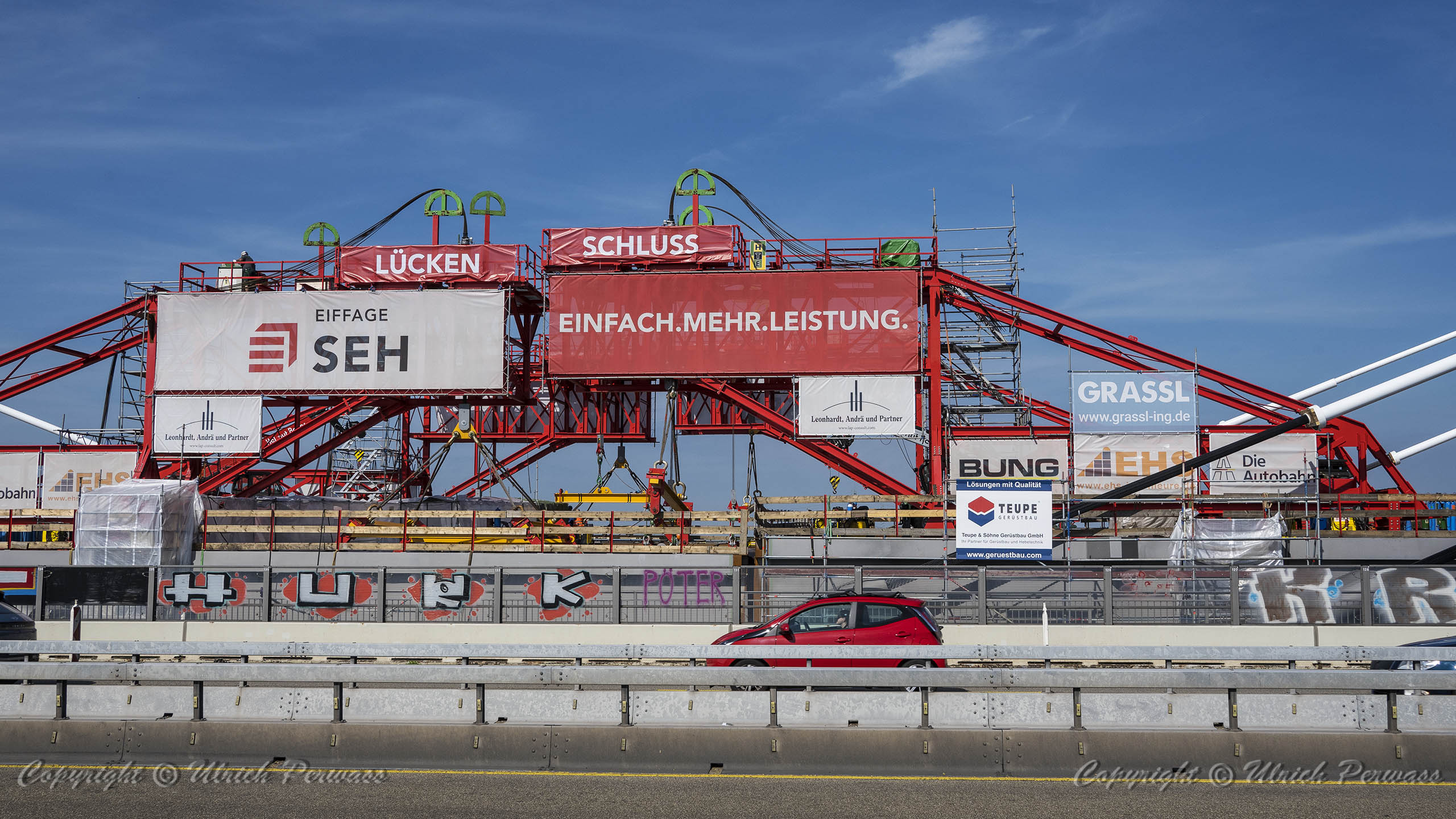Eine Woche später am 16. September das Gleiche nochmals, um den Baufortschritt zu erkennen. Die letzten Schrägseile waren zwar eingezogen, aber zwischen den beiden Brückenteilen gab es noch immer einen kleinen Versatz, der wohl inzwischen behoben ist. Herzlichen Glückwunsch an alle Mitwirkenden!
