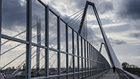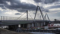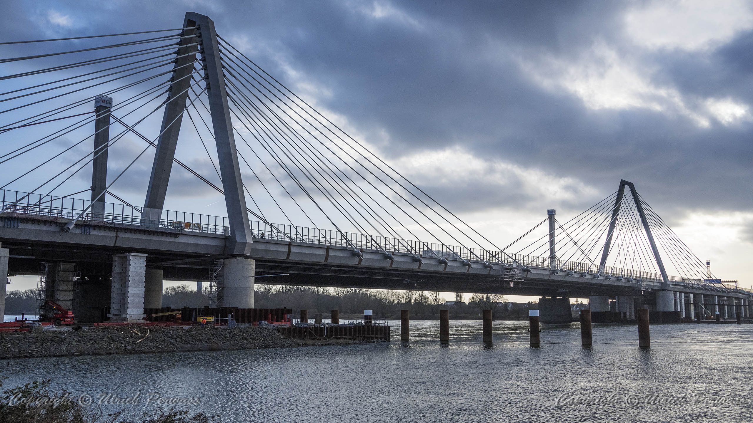 Freigabe der Ein Dauerregen überschattete die hochoffizielle Freigabe für den Verkehr am 4. Februar 2024, so daß ich erst am Tag danach bei teilweise Sonnenschein meine Radtour über die neue Brücke machen konnte. Ein komfortabler, breiter Radweg auf deren Nordseite ließ mich dieses technische Wunderwerk erleben und bestaunen, welches ich über Jahre hinweg immer mal wieder besuchte, um den Baufortschritt wie bei der Hochmoselbrücke zu fotografieren. Hier nun meine neuesten Bilder: